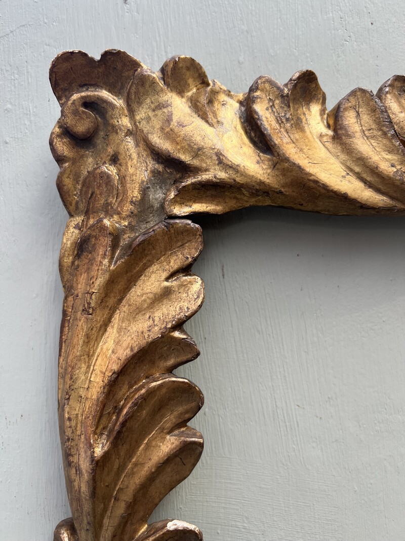 Rare carved and gilded wooden frame, with acanthus leaf decorations