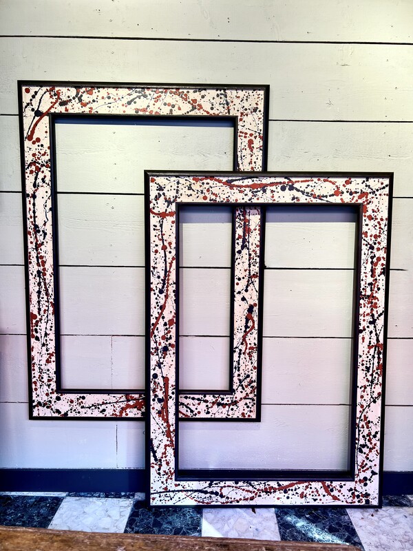 Pair of wooden frames painted with the so-called dripping technique in the style of the work of Jackson Pollock